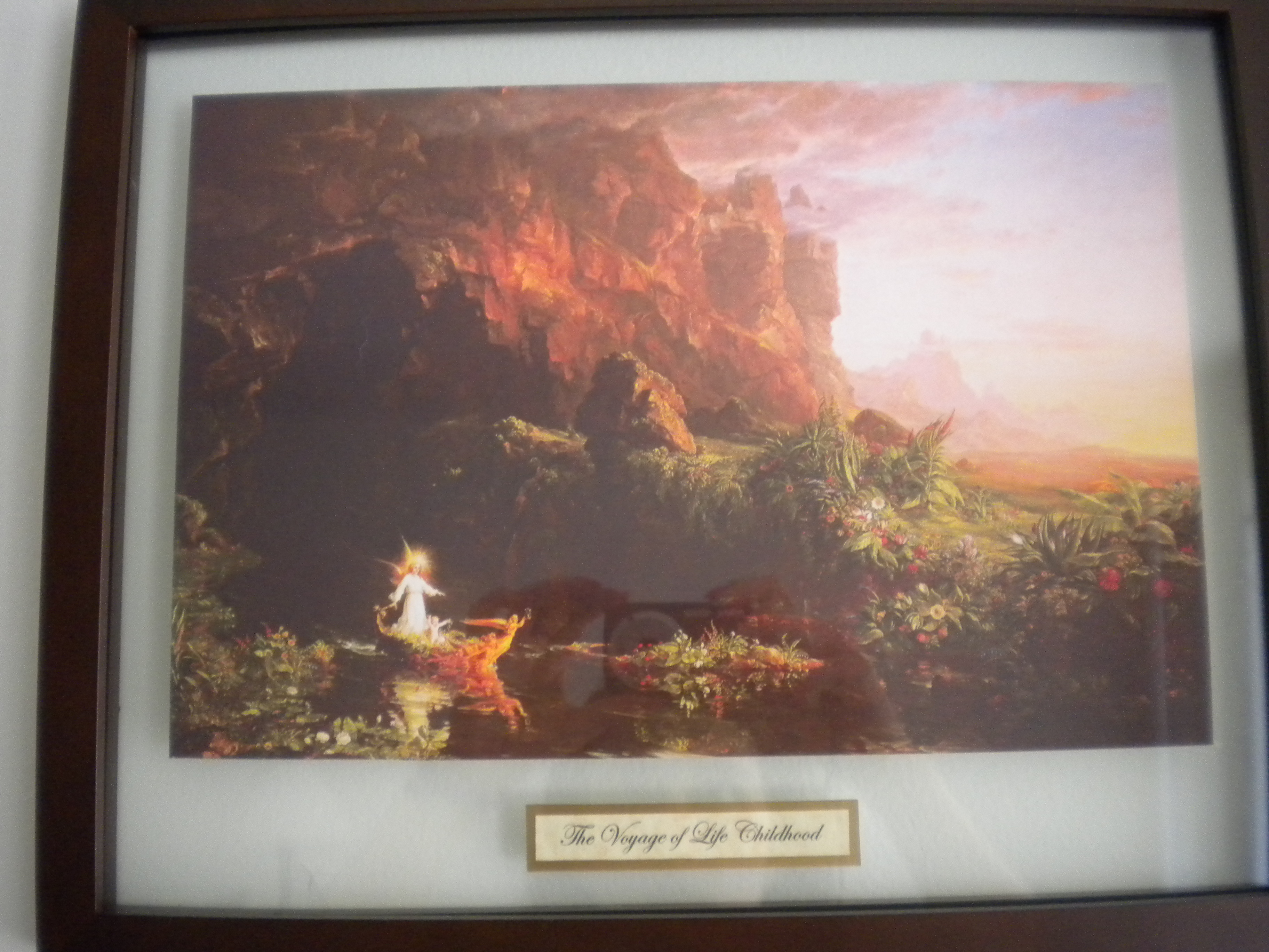 Obviously, the prints are not as vibrant as the paintings, let alone the emphasis of a 6 foot painting compared to a 1 foot painting really cannot be compared. However, it was important for me to place these paintings in prominence in my apartment to remind me of life and its voyages and adventures. The themes of the painting were very important to me and you can definitely look into more information on the allegories and why Cole used the themes he did. For this post, I want to emphasize the Guardian Angel in each of the paintings as what was most significant to me.