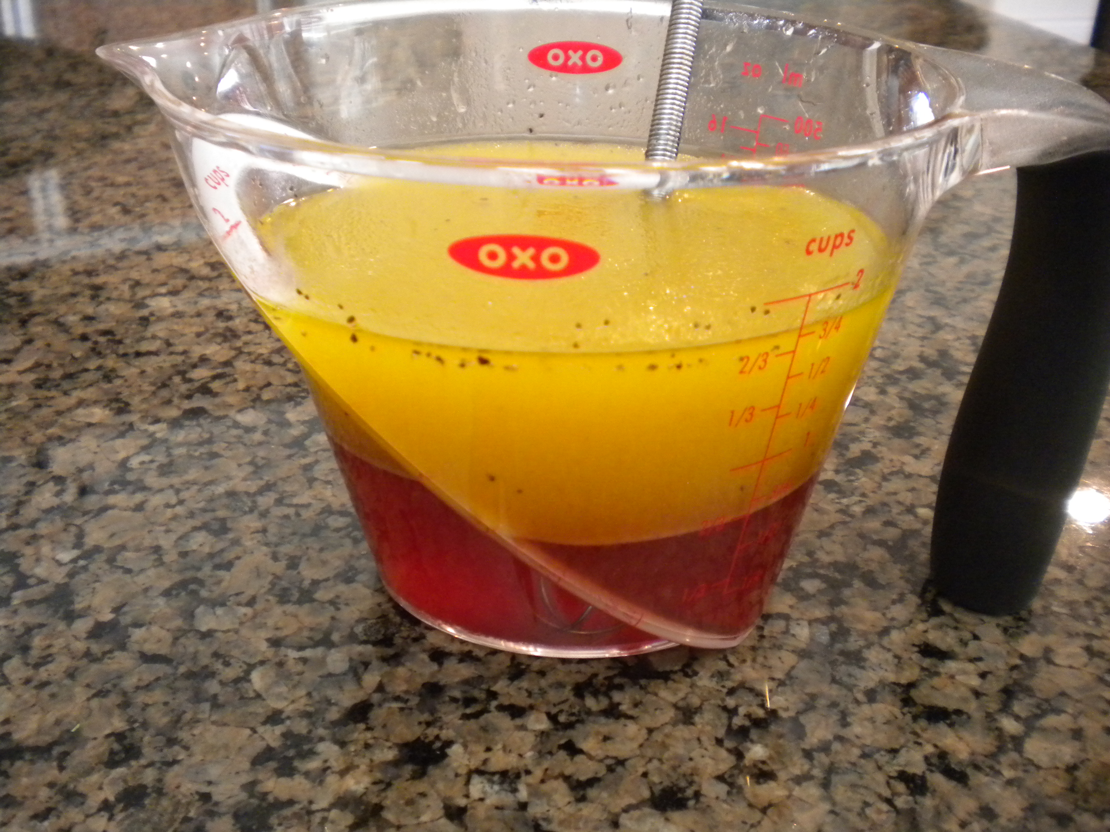 For the dressing: 1 cup of olive oil, 1/4 red wine vinegar, 1-3 tbsp of honey, 3 lemons squeezed and salt and pepper to taste. I combine these ingredients well into a light dressing and put about half of it onto the orzo mix. Now, this is where you have to let your tastebuds guide you. I like more sweet so I added more honey. Some however, like sour so more red wine vinegar and lemon. Keep tasting the dressing until you deem it worthy to put over your mixture.
