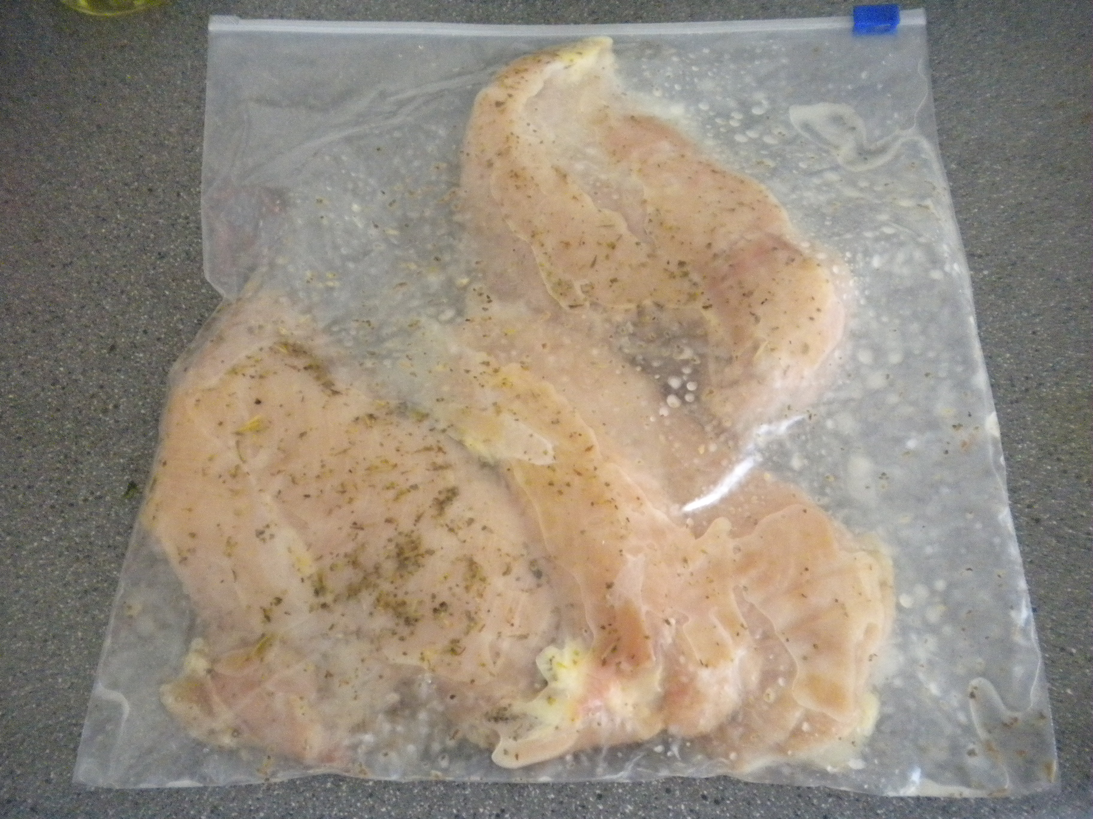 - Then I topped with dried Italian Seasoning. I set the bag in the fridge until I was ready to cook (overnight).